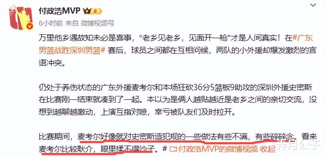 那么,是什么原因引起麦考尔与史小姐斗嘴的呢?媒体东谈主付政浩谈出了原因。那便是比赛时刻,麦考尔对史小姐造犯规的一些作念法有些不悦,有些碎碎念。看来麦考尔相比纯厚,眼里容不得沙子。